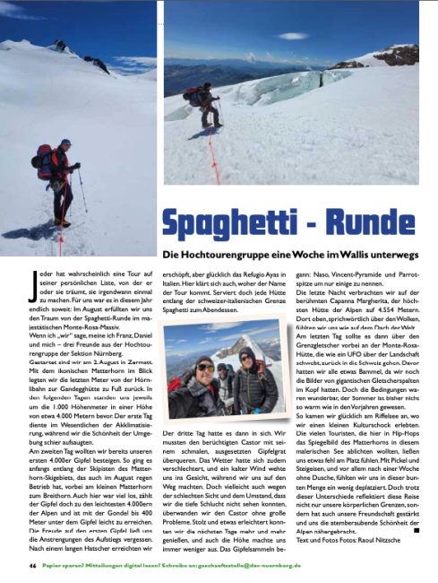 Bericht der Hochtourengruppe aus dem aktuellen Sektionsheft (Frühling 2026)
