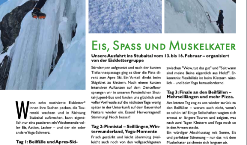 Bericht der Eisklettergruppe aus dem aktuellen Sektionsheft (Herbst/Winter 25)